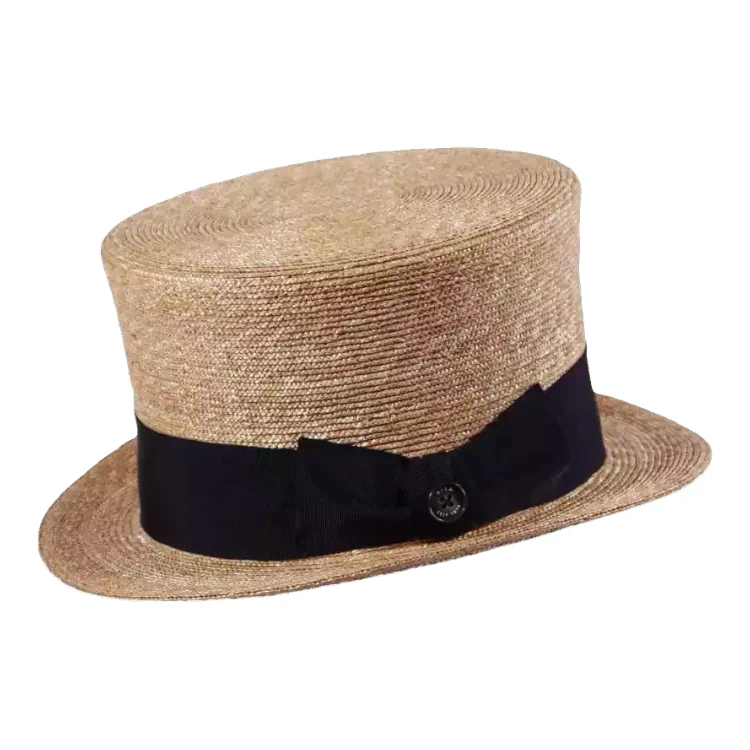 Der Zylinder begeistert durch seine stilistische Klarheit und feine Verarbeitung. Das gleichmäßig geflochtene Weizenstroh erzeugt eine ruhige, strukturierte Oberfläche, die mit der klaren Hutform harmoniert. Die Krempe ist flach gehalten, während die Krone durch ihre Höhe ein markantes Profil bildet ein Modell für Menschen mit Haltung und Stilgefühl.